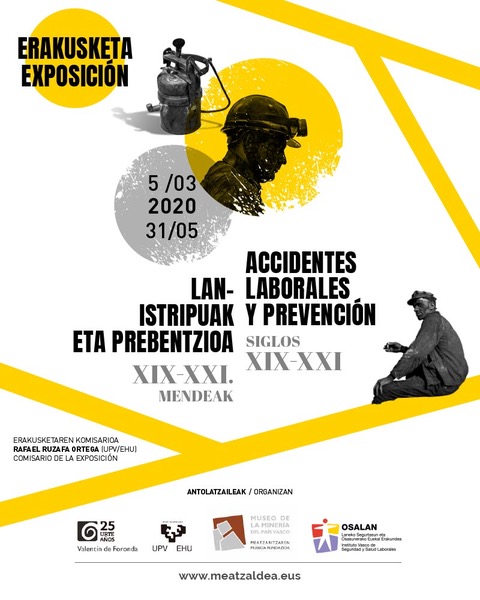 Desde el jueves día 5 de marzo hasta el próximo 31 de mayo podrá verse en el Museo de la Minería del País Vasco, en el corazón de la zona minera vizcaína, junto a la corta de la mina Concha II en Gallarta, la exposición "Accidentes laborales y prevención, siglos XIX-XXI". Fruto de la colaboración entre Osalan, el Museo de la Minería y el Instituto de Historia Social Valentín de Foronda de la UPV/EHU, ofrece un recorrido desde la práctica desatención de ocupaciones peligrosísimas en plena revolución industrial en el País Vasco hasta los esfuerzos preventivos de nuestros días. Ha comisariado la exposición Rafael Ruzafa, profesor de Historia Contemporánea en la universidad pública vasca, especialista en historia del mundo del trabajo.