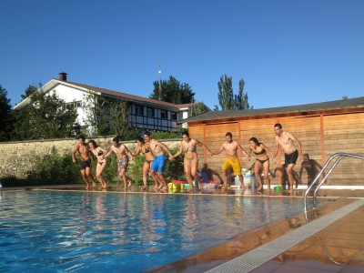 ...y para terminar, ¡un merecido chapuzón en el albergue de Barria!