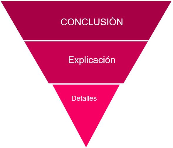Por lo tanto, al definir la disposición de un contenido digital, inicia el texto con el tema principal; a continuación, desarróllalo mediante una explicación; por último, añade los detalles necesarios para completar dicho tema.