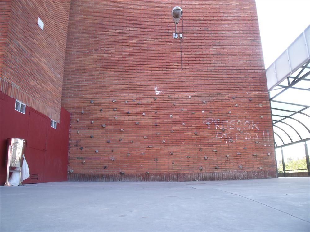- El frontón se construyó junto con el nuevo gimnasio y el asfaltado de las pistas de baloncesto. Material del muro: ladrillo.