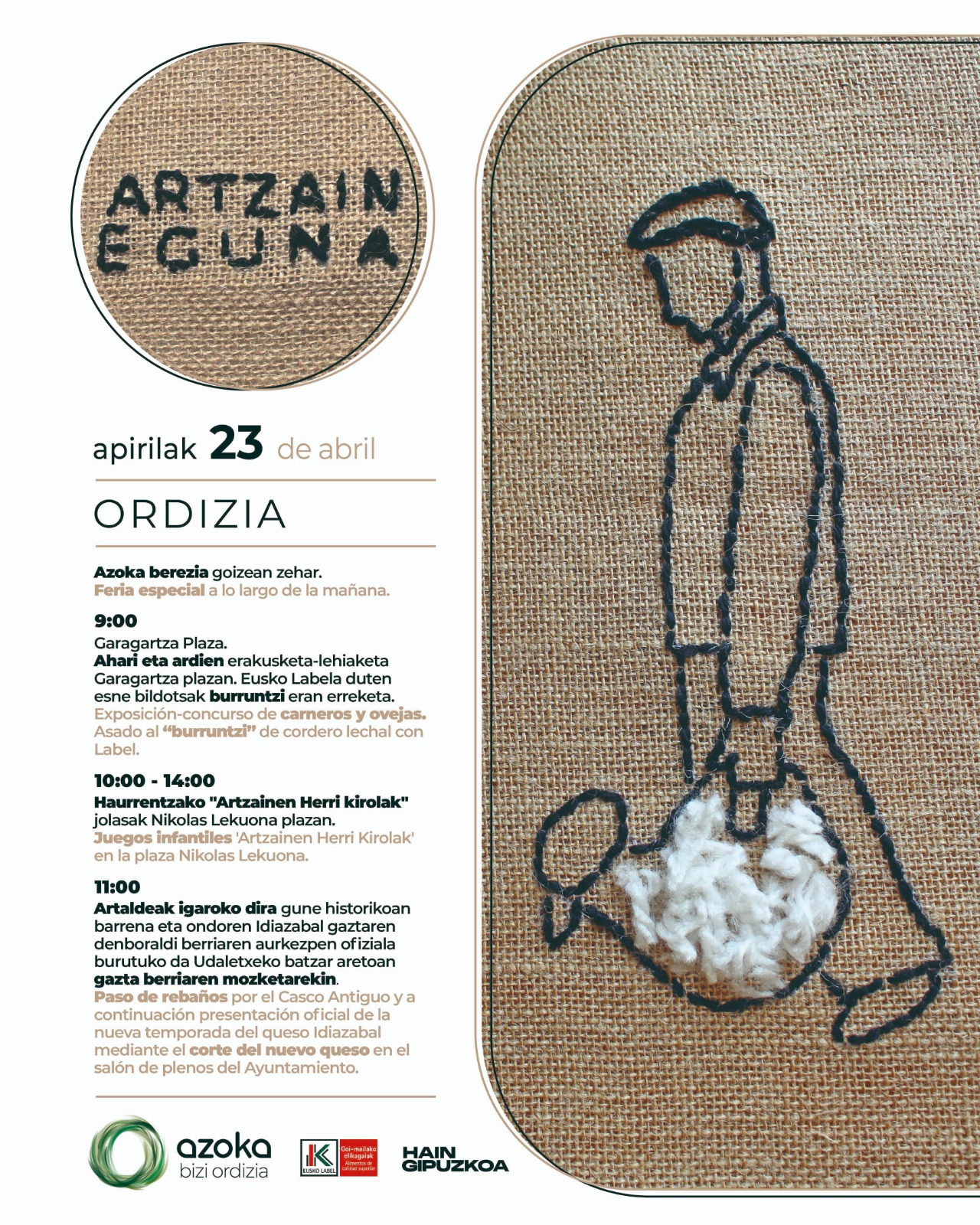 Los actos más destacados son la exposición y venta de carneros y la presentación de la nueva campaña de Queso Idiazabal. Por la mañana más de 200 ovejas recorrerán las calles del Casco Viejo de Ordizia, rememorando el paso de los rebaños por los pueblos.