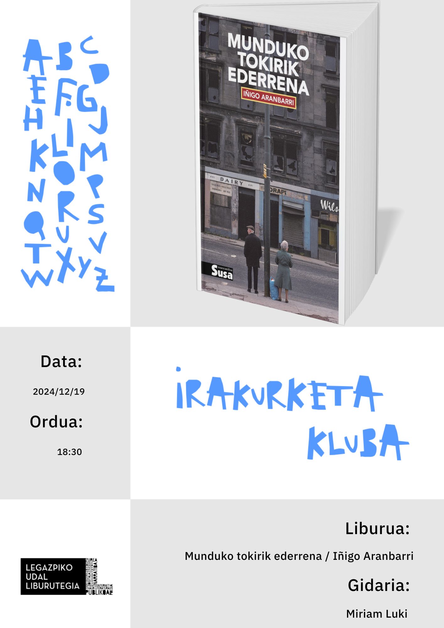 La próxima cita del programa del club de lectura en euskera para adultos será el jueves 19 de diciembre
