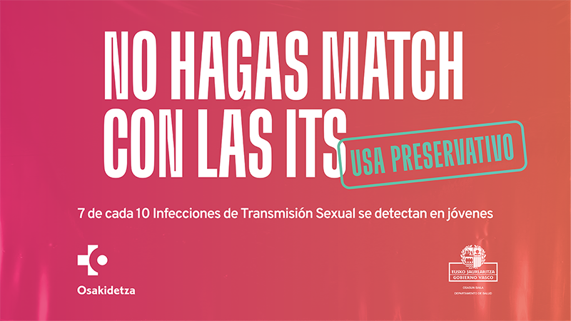 Campaña de información y sensibilización contra las infecciones de trasmisión sexual (ITS) impulsada por el Departamento de Salud y Osakidetza y dirigida especialmente a personas jóvenes, ya que en la franja de 15 a 24 años se concentra 1 de cada 4 ITS.
