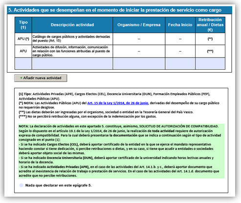 Actividades: declaración y compatibilidad