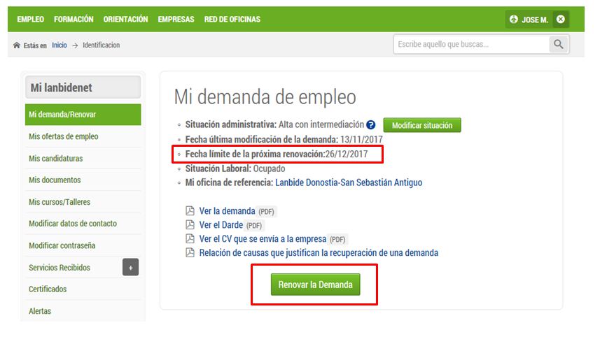 La renovación de la demanda es un procedimiento que deberás realizar, por regla general, cada 3 meses, en la fecha indicada en tu DARDE (documento de alta y renovación de demandante de empleo) o en el DARSE (documento de alta y renovación de demandante de servicios) y que puedes consultar en cualquier momento accediendo a Mi Lanbidenet. Si quieres renovar tu demanda evitando colas y desplazamientos a una oficina, lo puedes hacer llamando a los teléfonos 945 160 600 o 630 305 452, por SMS, o en la web, dentro de la sección Mi Lanbidenet. Los pasos a seguir son: