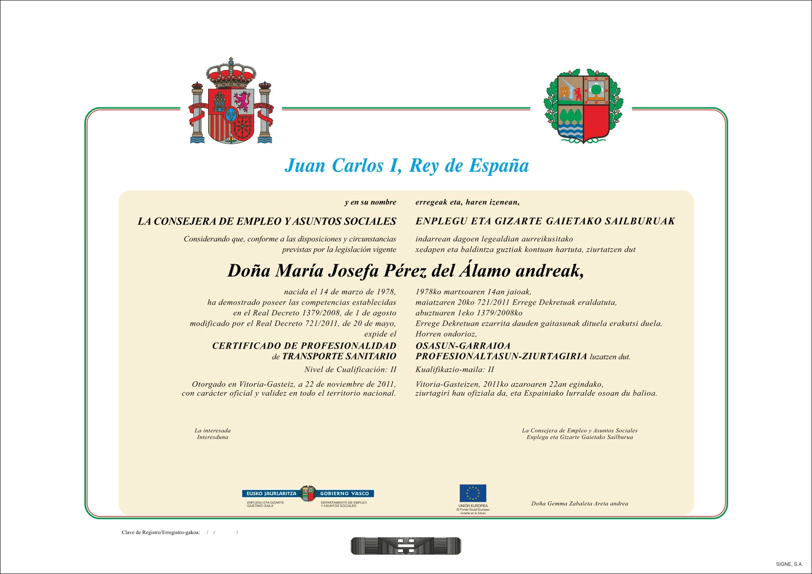 Es el instrumento de acreditación oficial de las cualificaciones profesionales del Catálogo Nacional de Cualificaciones Profesionales en el ámbito de la Administración laboral, que acredita la capacitación para el desarrollo de una actividad laboral con significación para el empleo y asegura la formación necesaria para su adquisición, en el marco del subsistema de formación profesional para el empleo. Un certificado de profesionalidad configura un perfil profesional entendido como conjunto de competencias profesionales identificable en el sistema productivo, y reconocido y valorado en el mercado laboral.