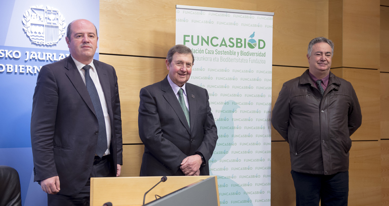 Con el objetivo de promover la caza como una actividad sostenible y respetuosa con los recursos naturales y el medioambiente, se ha constituido en Euskadi la Fundación Caza Sostenible y Biodiversidad (FUNCASBIOD). La nueva entidad se ha presentado hoy en un acto en la sede del Gobierno Vasco en Bilbao al que han asistido el presidente de la Fundación, Miguel Lazpiur, y el viceconsejero de Agricultura, Pesca y Política Alimentaria del Gobierno Vasco, Bittor Oroz, entre otros.
