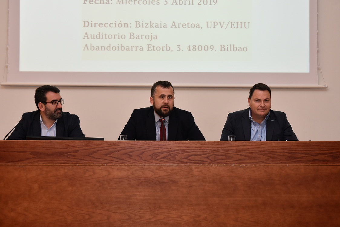 En la imagen, de izquierda a derecha, Salvador Carmona (Director General de i +3), Alberto Alonso ((Director General de Osalan) y Javier Giral (Corporare Environment H&S Manager