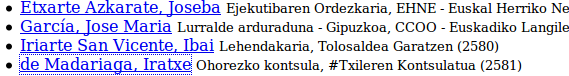 En esta imagen de ejemplo hemos ocultado el teléfono, pero suele venir en estos casos. El cargo aparece en este caso en euskera porque para obtener estas imágenes el ejemplo de carga lo hemos hechos sobre el conjunto de vCards en euskera, y es que hemos creado dos conjuntos de vCards, obviamente de hacer la exportación desde el fichero en castellano, aparecerá el cargo en castellano.