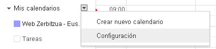 Para importar los datos a Google Calendar primero descárgate el fichero con extensión .ics del dataset del Calendario Laboral de 2013. Una vez que te has validado en tu cuenta de Google Calendar, accede a la configuración del calendario donde quieras importar los festivos (o si lo prefieres créate un calendario nuevo):