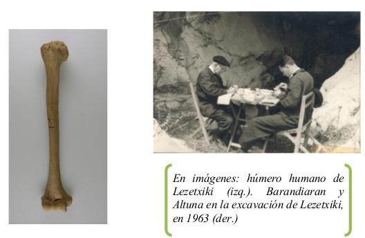 El húmero humano que José Miguel Barandiaran y Jesus Altuna encontraron durante las excavaciones de la cueva Lezetxiki de Arrasate en 1964 –hace ahora 50 años- es el resto humano más antiguo encontrado en Euskadi hasta el momento, pero es también el más antiguo de la Península Ibércica (a excepción de los hallados en Atapuerca) Así se ha constatado tras la prueba a la que ha sido sometida una muestra de esta pieza en Australia. Según la datación realizada mediante series del uranio, el húmero tiene una edad mínima de 164.000 años (+/- 9.000 años). El hueso, del Paleolítico inferior, se encuentra actualmente depositado en el Centro Goaz de San Sebastián (Centro de Conservación e Investigación de los Materiales Arqueológicos y Paleontológicos de Gipuzkoa), y su datación ha contado con la ayuda económica del Centro de Patrimonio Cultural del Gobierno Vasco.