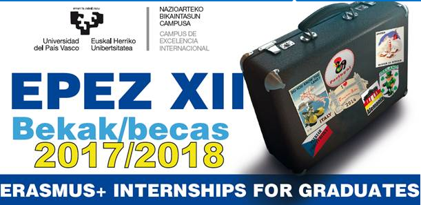 Se convocan las becas EPEZ XII (ERASMUS+Internships for graduates) para estudiantes de último curso de la UPV/EHU