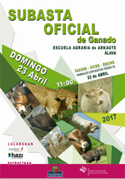 El fin de semana del 22 y 23 de abril se celebrará la tradicional Subasta Oficial de Ganado de Arkaute organizada por la Asociación de Criadores de Ganado Vacuno de Carne de Euskadi. El certamen tendrá lugar en la Escuela Agraria de Arkaute.