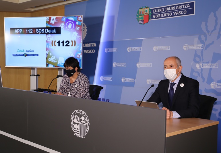El Vicelehendakari Primero y Consejero de Seguridad, Josu Erkoreka y la Técnica de Emergencias del Gobierno Vasco, Maider Larrañaga, han presentado hoy las nuevas funcionalidades de la aplicación de “112- SOS DEIAK” para prevenir a la sociedad y, en su caso, actuar si se dan situaciones de emergencia. Se trata de un doble proyecto que permitirá a la ciudadanía adoptar decisiones para su autoprotección de dos maneras: