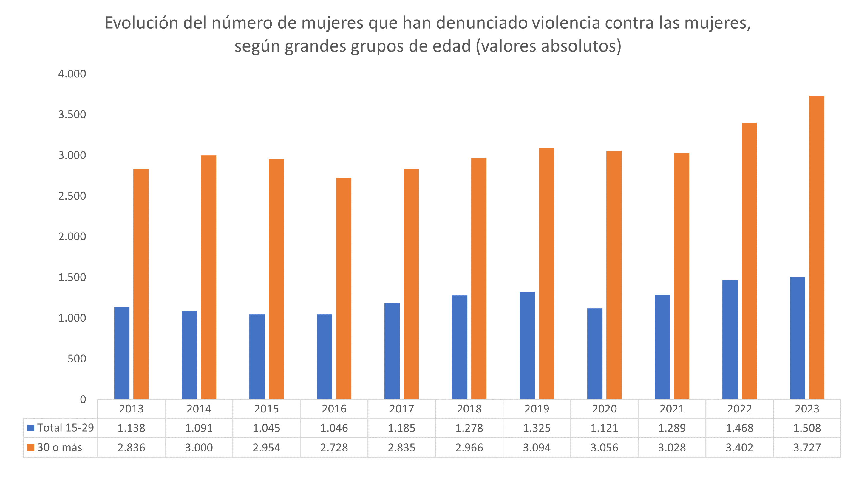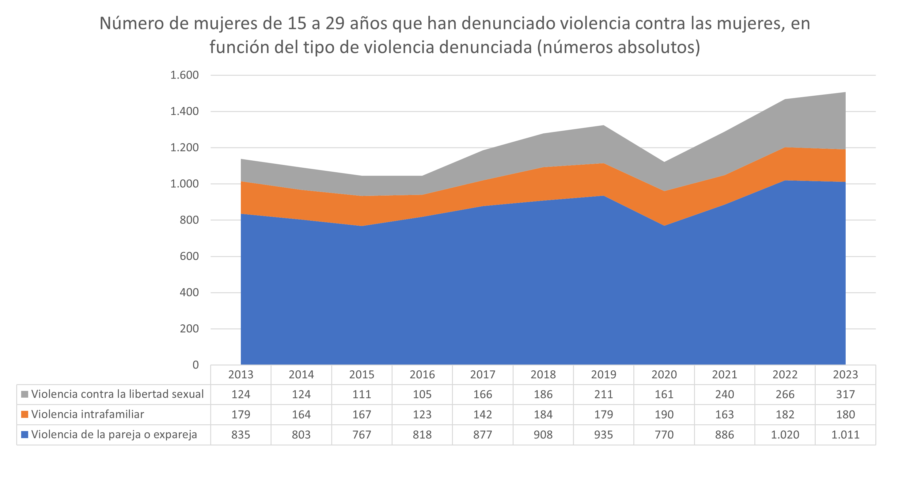 La violencia ejercida en el ámbito intrafamiliar, sin tener en cuenta la ejercida por la pareja o la expareja, ha sido denunciada en 2023 por 180 mujeres de 15 a 29 años.