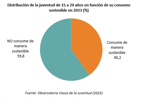 A partir de la realización habitual de cuatro de los cinco comportamientos analizados en esta investigación calculamos el índice de consumo sostenible. Siguiendo esta metodología, podemos considerar que el 40,2 % de la juventud de 15 a 29 años de Euskadi realiza habitualmente prácticas de consumo sostenible.