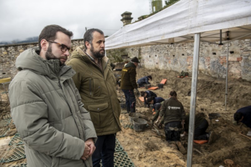 Alberto Alonso, director del Instituto de la Memoria, la Convivencia y los Derechos Humanos−Gogora, e Iker Santocildes, alcalde de Orduña, han visitado esta mañana los trabajos de la tercera campaña de exhumación que se está llevando a cabo en el cementerio de la localidad.