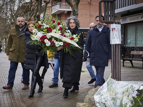 Han participado en la ofrenda floral, la Vicelehendakari y consejera de Cultura y Política Lingüística, Ibone Bengoetxea, la consejera de Justicia y Derechos Humanos, María Jesús San José, y los responsables del área de Memoria y Derechos Humanos: Alfredo Retortillo, viceconsejero de Derechos Humanos, Memoria y Convivencia, Jagoba Álvarez, director de Derechos Humanos y Atención a Víctimas y Alberto Alonso, director del Instituto de la Memoria, la Convivencia y los Derechos Humanos Gogora.