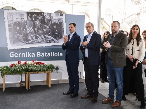 Alberto Alonso, director de Gogora ha centrado su intervención en subrayar que la construcción de la memoria democrática “implica mirar a nuestro pasado en busca de aquellos valores que sirven para construir la ciudadanía del presente y del futuro”. “El recuerdo del Batallón Gernika debe reflejar nuestro compromiso con la paz, con la libertad y con Europa” ha añadido.