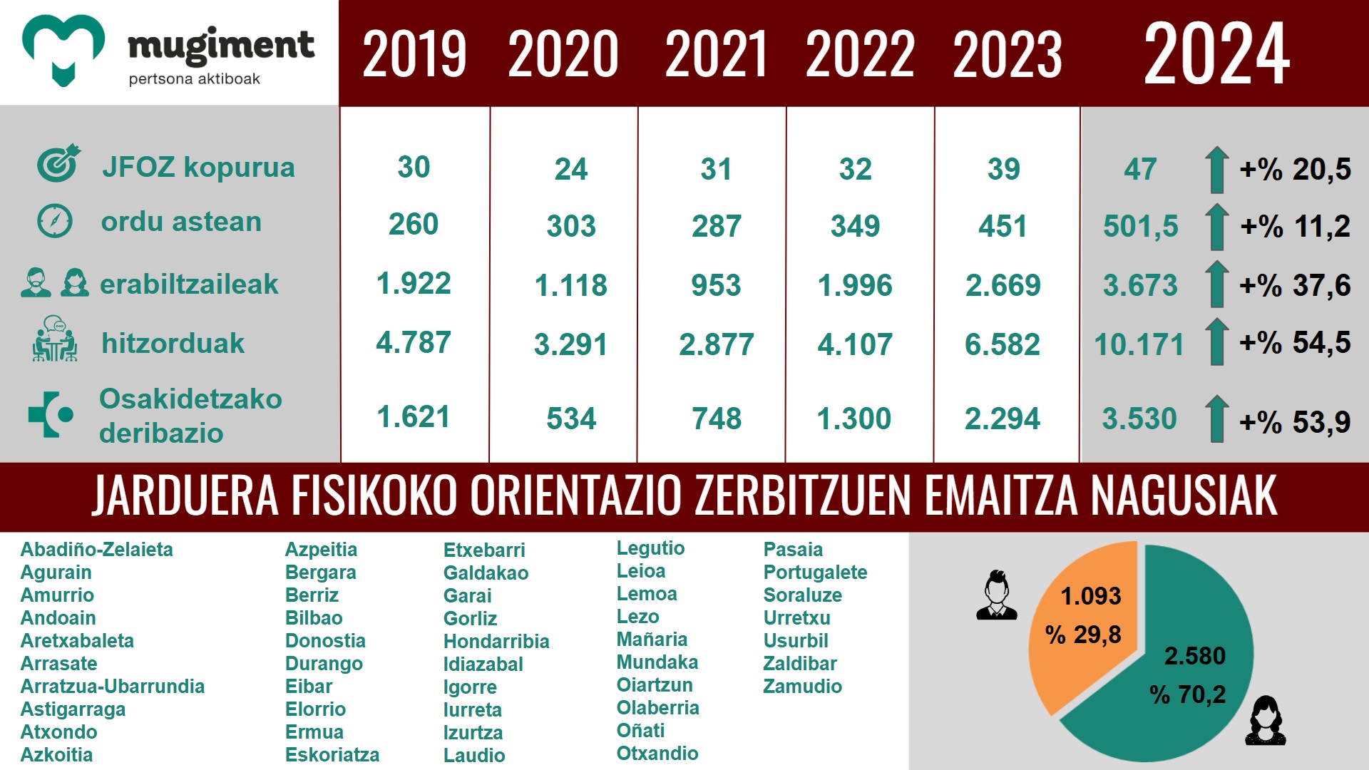 Presentamos los resultados de los Servicios de Orientación en Actividad Física de 2024. En la imagen se analizan los siguientes aspectos: