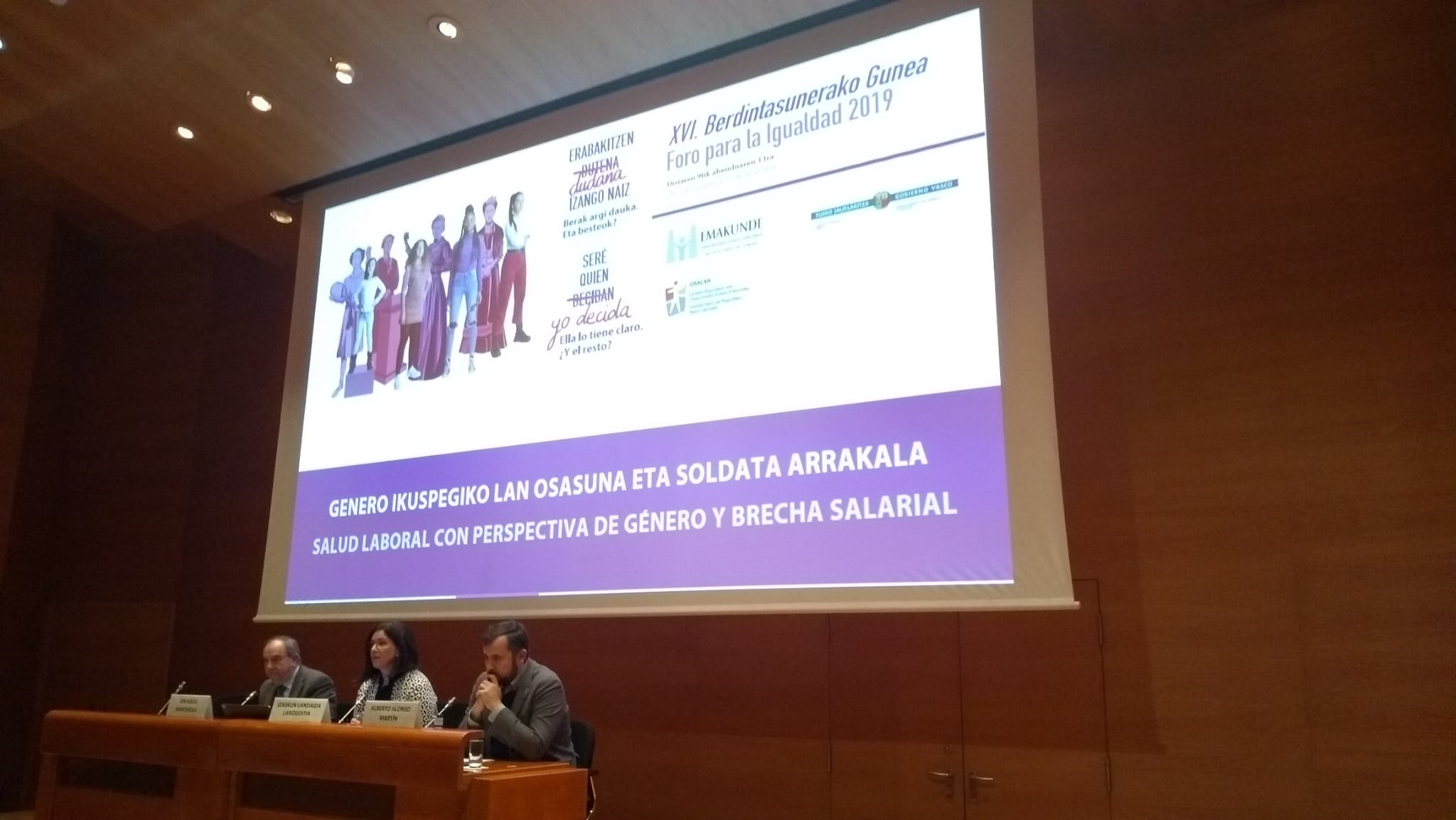 Gaur goizean, Bilboko Euskalduna Jauregian, "Laneko osasuna genero-ikuspegiarekin eta soldata-arrakala" jardunaldia inauguratu izan da. Jardunaldi hori Lan eta Justizia Sailak, Emakundek eta Osalanek antolatu dute, eta, bertan, honako hauek landu dira: lanpostuak genero-ikuspegiarekin baloratzeko lan-sistemak; Lan Ikuskaritzak aurten genero-ikuspegiarekin egindako jarduketak; protokoloak aplikatzeko jarraibide metodologikoak. sexu-jazarpenaren eta sexuan oinarritutako jazarpenaren aurka; eta, azkenik, enpresen prebentzio-kudeaketan genero-ikuspegia txertatzeko jarraibideak ezartzeko proiektu pilotuaren emaitzak.