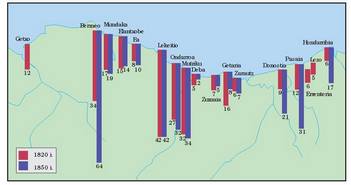 eta itsasertzeko herri gehientsuenetan zeuden koipea urtzeko labeak; lumera,