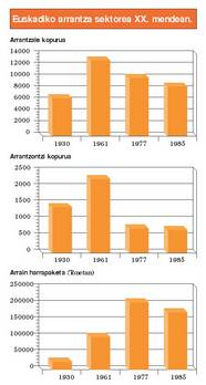 zeuden eta hamar urteren buruan erdia. Gipuzkoa eta Bizkaiko arrantza 70eko
