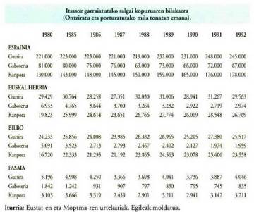 Aitzitik, Pasaiako eta Bilboko portuek egonkortasuna lortu dute salgaien trafikoan: 30 milioi inguru tona urtean. Orobat portu horietan ere behera egin du gaboteriak eta gora, berriz, salgaien nazioarteko garraioak. 1980ean gaboteriako trafikoak salgaien sarrera-irteeren %23,5 osatzen zuen portu horietan, eta 1992an, aldiz, %9,4 baino ez.