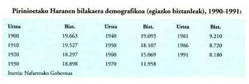 Demografiaren hazkundea etengabea izan da eskualde horretan hiriburuak, Iruñeak, duen biztanle kopuru handiaren eraginez eta azken bi hamarraldietan Iruñea inguruko udalerriek izan duten hazkundearen eraginez orobat. Irunberri-Aoizko arroako udalerrietan, berriz, handia da biztanleen galera, eta Itzagaondoa, Ibargoiti eta Urraul udalerrietan herrigune batzuk zeharo hustu dira. Arroa horretako 12 udalerrien artean, soilik Aoitzek eta Irunberrik dituzte 1.000 biztanle baino gehiago. Iruñeko arroan, berriz, nekazari giroko udalerrietan, hiriburutik gertuen daudenetan batez ere, demografia zertxobait igo da azken hamarraldian, Iruñeak Nafarroa osoan duen erakarmenez. Iruñeko biztanleria asko eta etengabe hazi da. Azken hamarraldian hazkunde hori are handiagoa izan da Iruñea inguruko herri batzuetan: Barañain, Antsoain, Burlata, Berriozar eta Zizur Nagusian. Biztanleriaren hazkunde horrexek eragin du hain zuzen ere ia herri horiek denak udalerri independente bihurtzea azken urteotan. Barañaingo udalerriak izan du Nafarroa osoko hazkunde bizkorrena, 1991n 17.001 biztanle zituen, eta %28.335ko hazkundea izan du 1960ko biztanle kopuruarekiko. Urte horretan bertan, Iruñeak 191.197 biztanle zituen, hau da, Nafarroa osoko biztanleen %36,52a, eta eskualde horretako %62,92a. 1991n Pirinioaurreko haranetako eskualdeko biztanleak 273.453 ziren, hau da, Nafarroako biztanleen %52,23a.