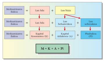 Lan hilak osagai ditu kapital aldaezina eta ekoizpen prozesuko bitartekoen eta objektuen balioa, eta ekoizterakoan salgaiei, merkantziei balioa eransten diete.