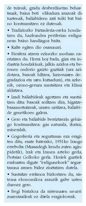 • Hazkunde etengabea beharrezkoa eta egingarria da, baina arduratu behar dugu planetaren funtsezko baliabide fisikoak suntsitu ez daitezen.