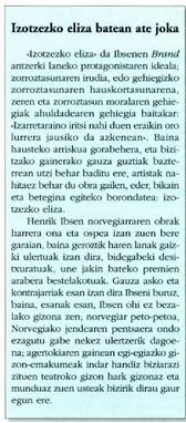 Henrik Ibsen Skien-en jaio zen semealaba askoko familia batean. Aitak kiebra jo zuen espekulazioetan, eta zurrutari eman zitzaion ; amak mistizismoan aurkitu zuen geriza ; azkenerako bikote hura bereizi egin zen. Etxeko giroaren eraginez, eta izaeraz lagunarterako zuen joera eskasez, Ibsenek haurtzaro bakartia izan zuen, bere baitara hildua. Hamasei urterekin, Grimstad-era hidali zuten, farmazia batean saltzaile-mutil.