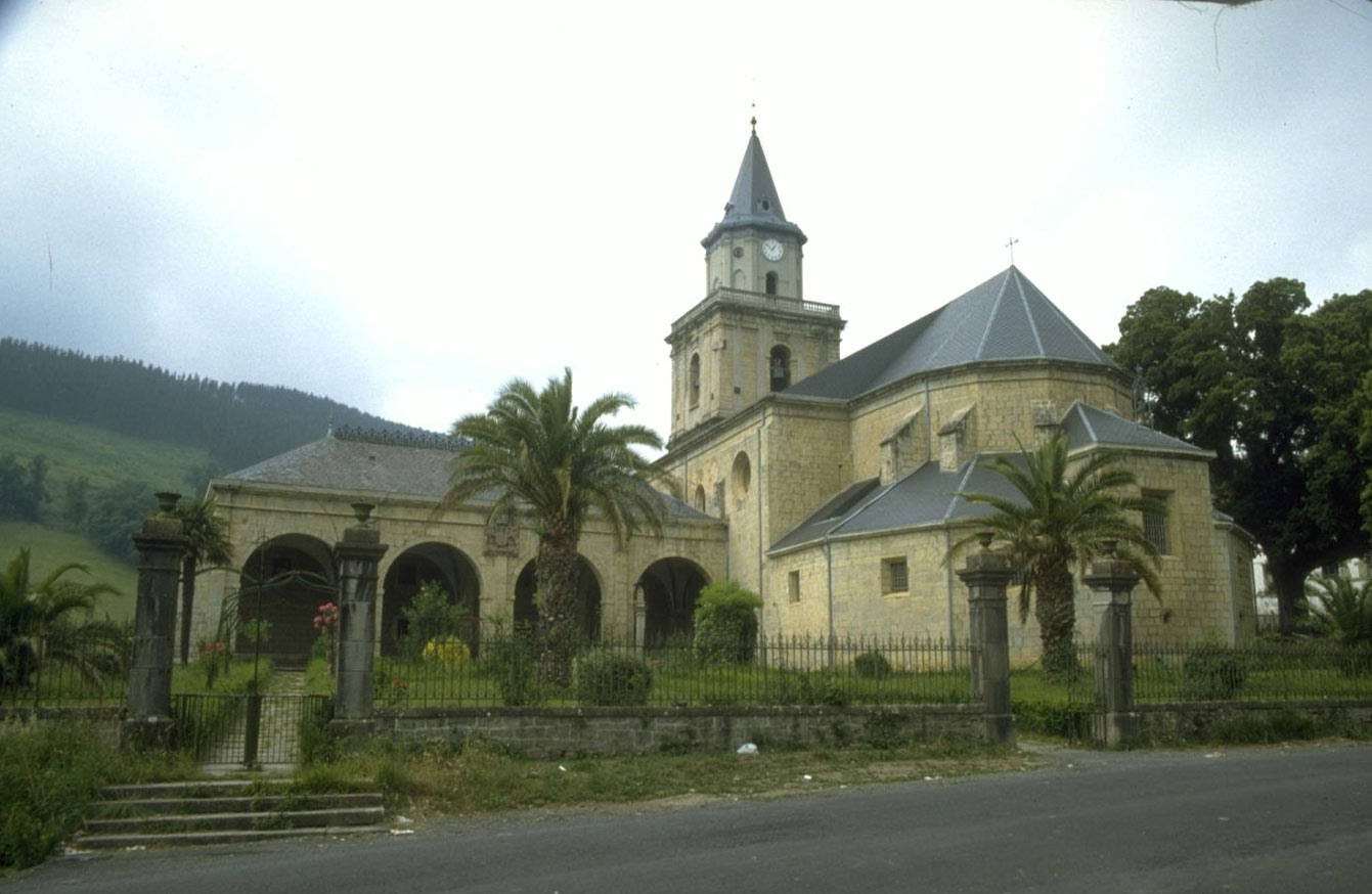 Santutegi honek harrizko portiko bikaina dauka, aurrealdean harrizko lau arkurekin eta alboan beste batekin. Pilastren gainean hiribilduko armarriak daude, Austriako Etxearen armarri barroko handia inguratzen dutenak. Erretaula nagusia Euskal Herriko ederrenetakoa da eta trazeriako dekorazioa duen soingaineko zabala eta Ama Birjinaren eta Pasioaren omenezko ikonografia du. Andre Mari gotiko bat gordetzen da, XIII. mende amaieraren eta XIV.aren artekoa, eta antzinatasun handiko beste bat, behar bada Bizkaiko zaharrena. 1641ean hildako Kristobal de la Camara y Murga apezpikuaren hilobia dago.