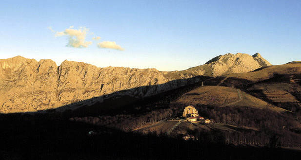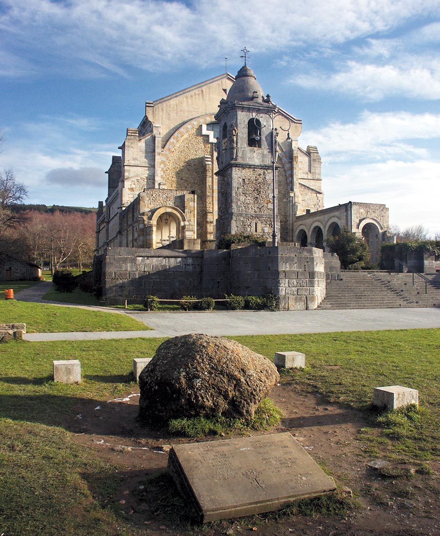 Sanctuaire des Santos Antonios à Urkiola, une uvre monumentale très visitée et développée en trois nefs de hauteurs diverses, la nef centrale étant plus haute que les nefs latérales. C'est là un ouvrage du XIXème siècle, avec un intérieur historiciste et quelques traits néo-romans. A ce Sanctuaire, placé dans un décor naturel d'une grande beauté, préexistait un autre bâtiment religieux dont on conserve la tour en deux corps, avec un clocher sur le corps supérieur et un toit en coupole brillante en forme de bulbe.