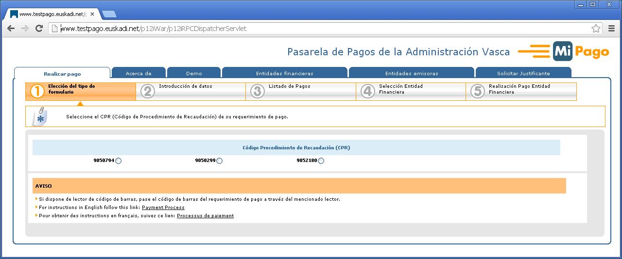 Es una página de pruebas de la Pasarela de Pagos de la Administración Pública Vasca con material y utilidades para Administraciones Públicas emisoras, entidades financieras colaboradoras y desarrolladores de aplicaciones que interactúen con la Pasarela de Pagos.