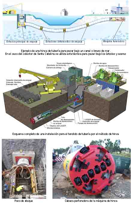 La elección de la técnica de hinca permitirá la construcción del colector sin apertura de zanjas en la superficie a todo lo largo de su trazado, y abriendo únicamente pozos verticales en cuatro puntos del mismo. Este sistema ahorra espectacularmente molestias y afecciones a la ciudad (inconvenientes a los peatones, ruido y polución al romper el pavimento, riesgo para los servicios existentes en el subsuelo, desvíos de tráfico, eliminación de arbolado, transporte de tierras y material de relleno, etc.), de tal manera que los ciudadanos y vehículos que transiten por el trazado del colector ignorarán que bajo sus pies se está procediendo a la construcción de una importante conducción de aguas residuales.