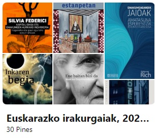 Pinterest-en bildu ditugu 2020ko urtarrila eta ekaina bitartean gure lankideek mailakatutako irakurgaiak. Bertan topatuko dituzu azken nobedadeetako batzuk, bakoitzari dagokion euskara mailarekin. Uda honetan euskaraz irakurri nahi baduzu, sar zaitez eta eman begiratu bat!