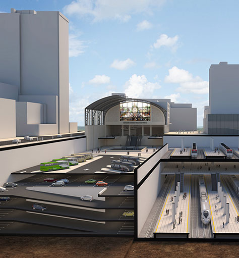 Terminal berriak hiriaren zabalgunearekin eta alde zaharrarekin erabateko integraziorako eta hiri eraldaketarako aukera emango du. Bertan, une honetan Bilbora heltzen diren aldirietako eta ibilbide luzeko zerbitzu guztiak elkartuko dira, etorkizunean helduko diren Abiadura Handiko zerbitzuez gain. Geltokia, 80x25 m inguruko dimentsioak izango dituen sekzio laukizuzeneko elementu gisa egituratuko da, eta erabat lur azpian egongo da, Adifen egungo trenbide zabalgune auxiliarraren azpian. Trenbide horiek guztiz desagertuko dira obrak amaitu ondoren, erabateko iragazkortasunerako aukera emanez. Trenbidea lur azpian sartzeko lanek Cantalojas ingurura jarraituko dute. Leku horretan ere erabat estalita geratuko dira egungo trenbideak.