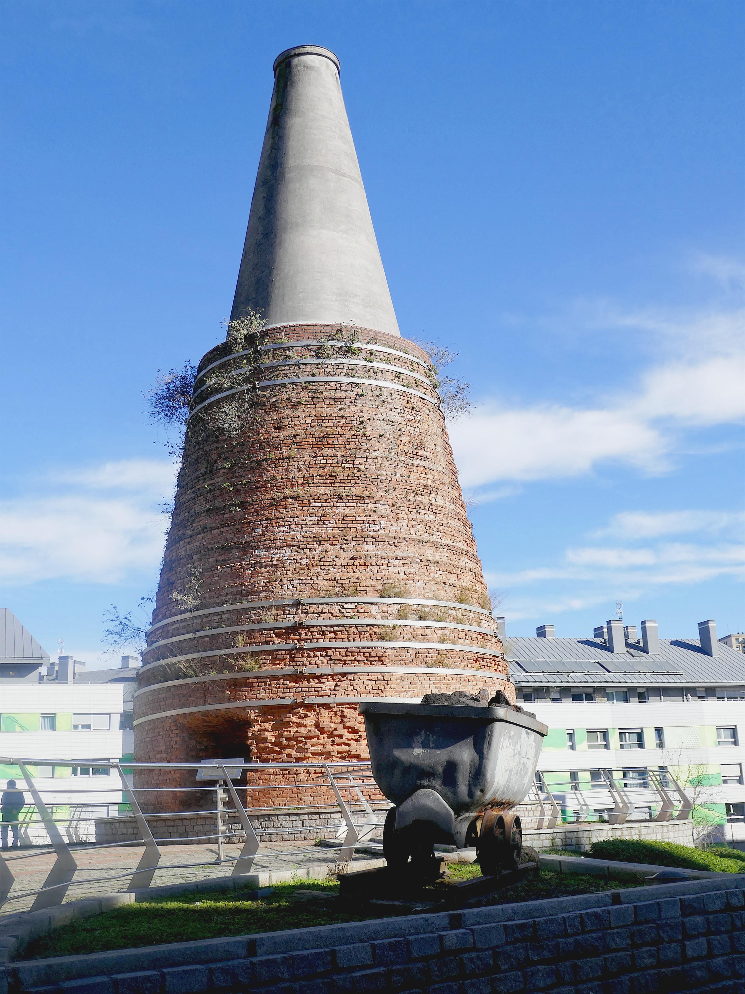 Esta calcinación se realizaba en hornos como el que vemos en la plaza Saralegi de Bilbao. Ésta en concreto fue proyectada en 1935 y erigida a continuación. Presenta un cuerpo principal troncocónico de ladrillo (que es donde se cargaba el mineral), una base cilíndrica de mampostería (que hacía las funciones de cámara de combustión) y una chimenea de hormigón de 8m de altura.