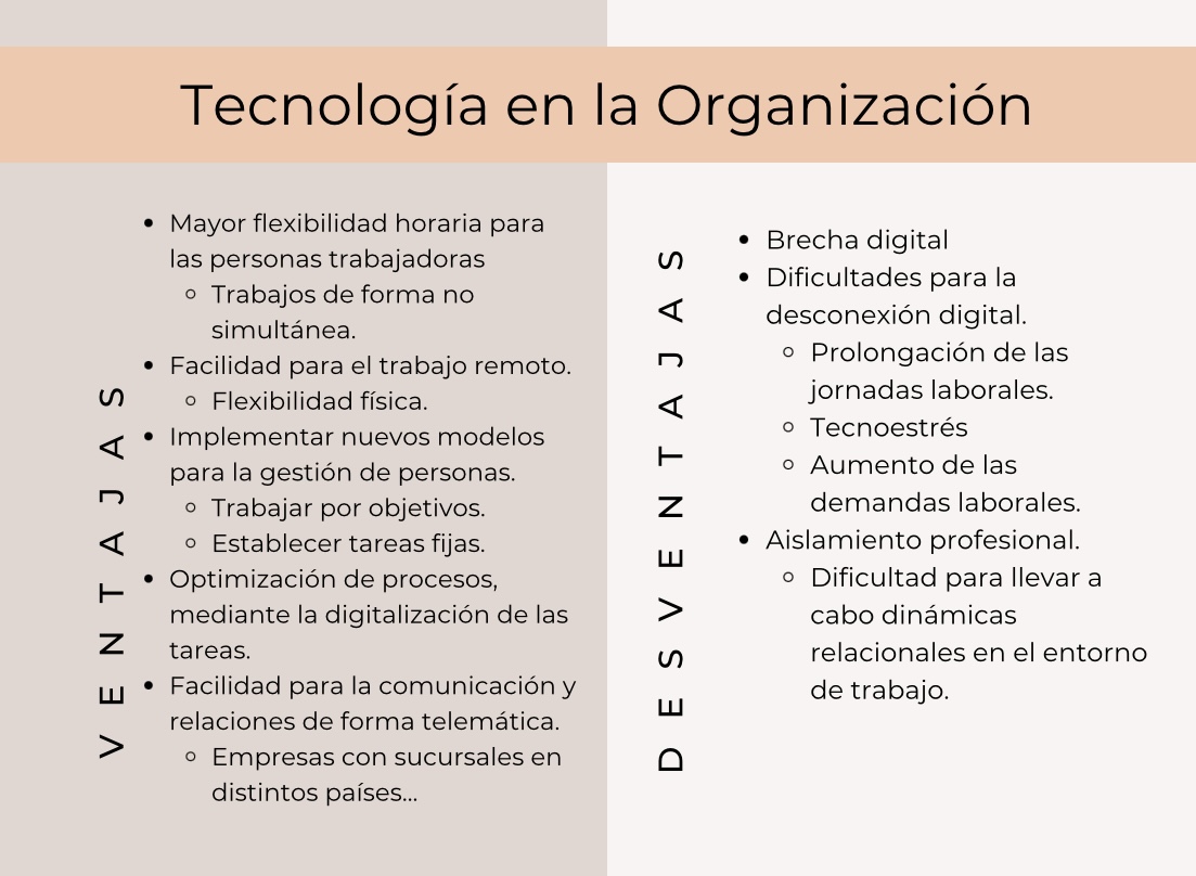 La presencia de las tecnologías y el cambio que la digitalización está generando, es una realidad en la actualidad laboral en la que nos encontramos (Kirchner & Ipsen, 2023). Cada vez más empresas están adoptando recursos tecnológicos, además de para la agilización de procesos de producción y el aumento de la productividad, para tratar de favorecer la conciliación de la vida laboral y familiar. Sin embargo y pese a las ventajas en materia de conciliación que nos proporcionan estas nuevas herramientas, conllevan también una faceta más negativa en cuanto a una mayor demanda de trabajo y presión, que también es necesario tener en cuenta para disponer de una visión completa de lo que implican las nuevas tecnologías en el ámbito laboral.