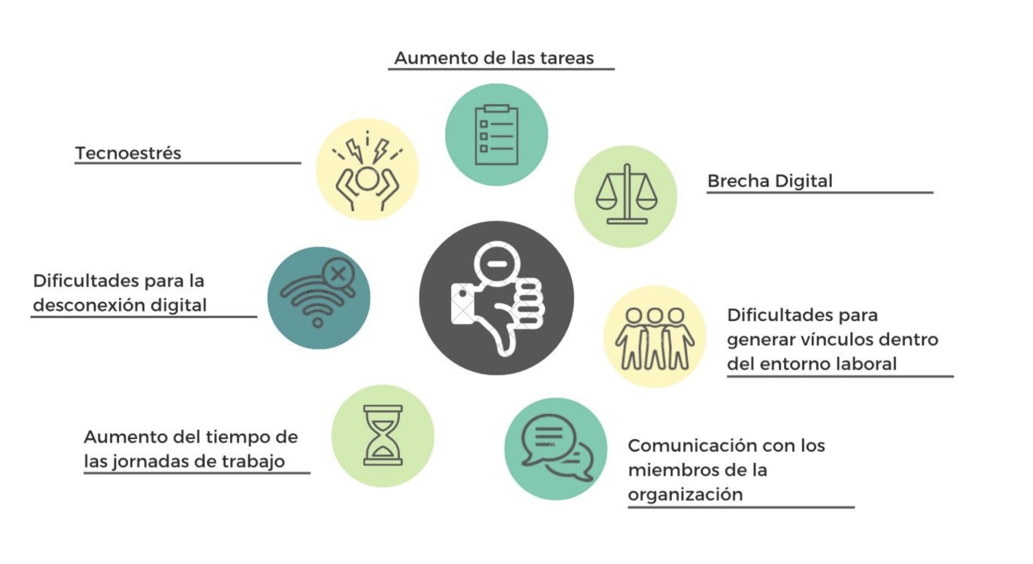 Pese a todos los beneficios mencionados anteriormente, estas nuevas modalidades traen consigo ciertos aspectos negativos para la persona trabajadora, dificultando las facilidades para la conciliación (Figura 2).