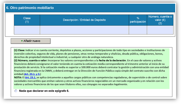 Dependiendo del régimen económico matrimonial se deben declarar las cuentas bancarias de las que son titulares el cargo público y/o su cónyuge (con el porcentaje de participación correspondiente).