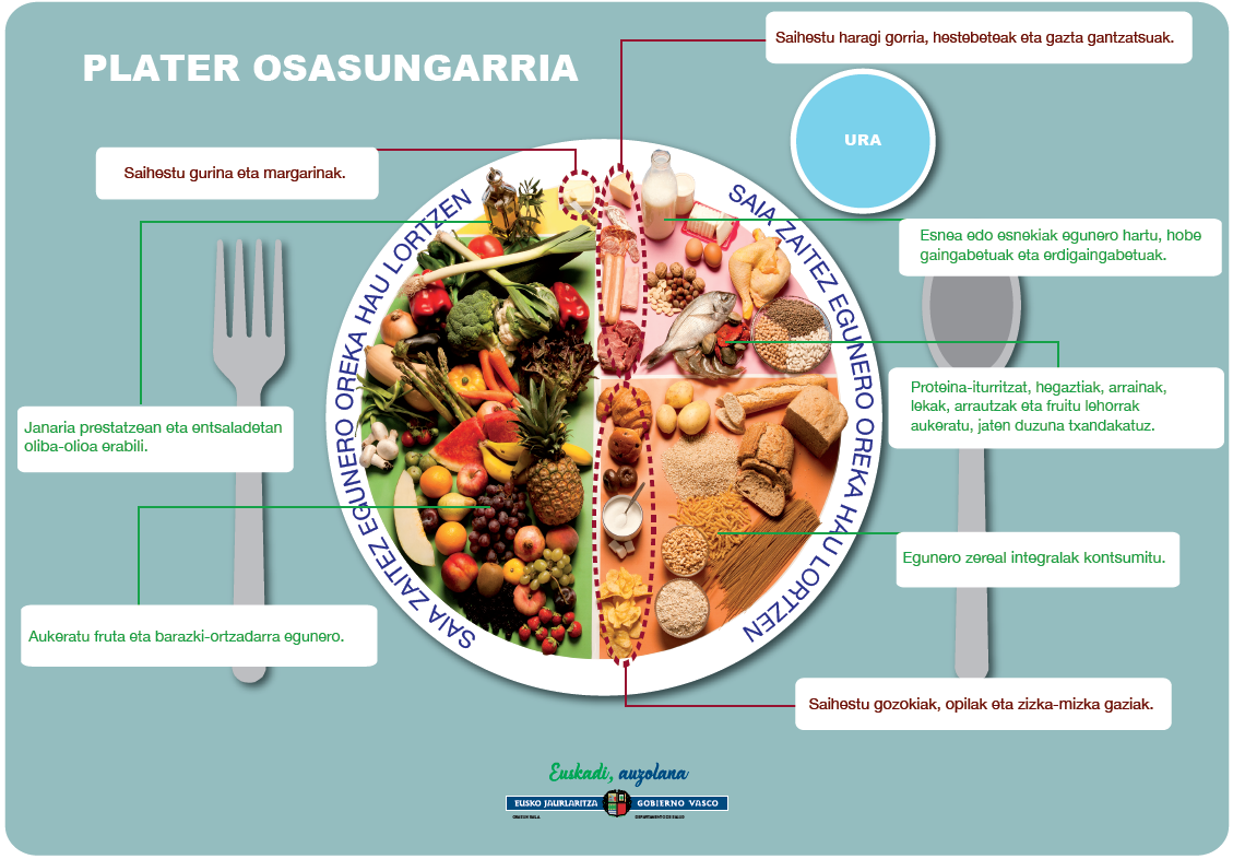 5. Ura: Edateko, nagusiki ura. Freskagarri gasdunak eta edari gozoak ahalik eta gutxien. Eta tea edo kafea hartzekotan ere, azukre gutxi botata.