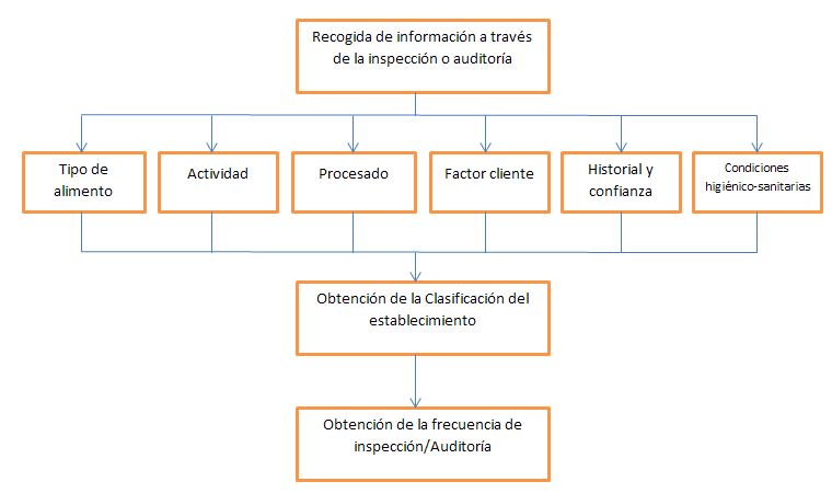 Las condiciones higiénico-sanitarias de cada uno de los establecimientos se recogen en las inspecciones/auditorias. Estas inspecciones/auditorías, se realizan en base a las herramientas de homogenización y control creadas al efecto. De este modo cada establecimiento, en base a la actividad propia que realiza, está sujeto a la revisión de todos los parámetros o ítems que han de ser objeto de verificación. Todos los ítems del establecimiento están clasificados en 4 niveles de riesgo (crítico, serio, mayor o leve). Teniendo en cuenta el grado de cumplimiento de estos requisitos, se obtiene la “calificación higiénico sanitaria” cuya valoración se incorpora al resto de parámetros para obtener la clasificación final de riesgo y consecuentemente la frecuencia de inspección.
