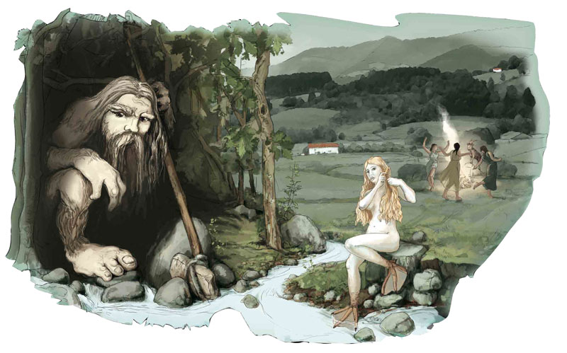 Bestalde, kultura-ondare immateriala tradizio, mito eta kondairei lotuta dago. Euskal mitologiaren barruan, pertsonaia eta kondaira ugari ditugu. Horien artean, honako hauek aipa daitezke: Basajauna (basoko jauna, alegia), Gernika-Lumoko Amille baserriaren aurrietan agertzen ziren sorginak, edota ibaien inguruan ilea urrezko orrazi batez orrazten zuten eta hurbiltzen zitzaizkien gizonak limurtzen zituzten lamiak (ahate-oinak zituzten emakume ederrak).