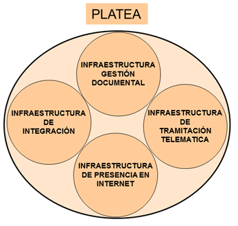 La infraestructura de Gestión documental de dokusi es, a su vez, parte de Platea (Plataforma Tecnológica para la E-Administración).