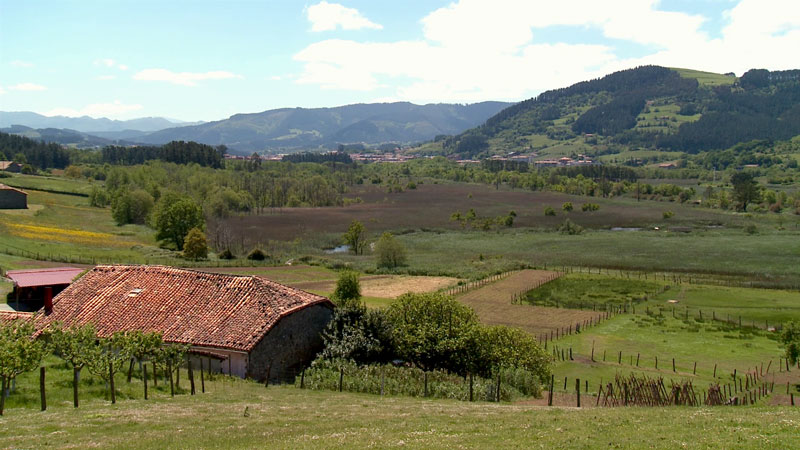 Como parte de la campiña atlántica reflejo de la actividad del ser humano en el territorio, cabe destacar la presencia de los caseríos, muchos de cuyos productos hortícolas pueden comprarse en mercados de la zona. Calizas rojas y grises y areniscas amarillas son algunos de los materiales constructivos más habituales de los caseríos del estuario superior.