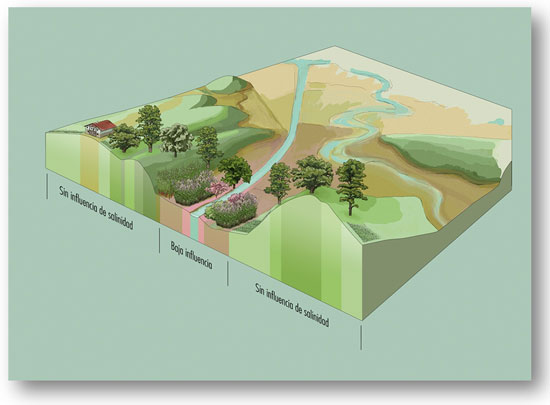 Los estuarios son ecosistemas complejos, en los que confluyen los procesos marinos generados por el oleaje, la marea y el viento, y los procesos fluviales, dando lugar a la mezcla de aguas dulces y saladas.