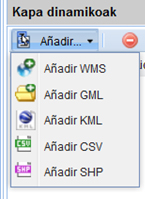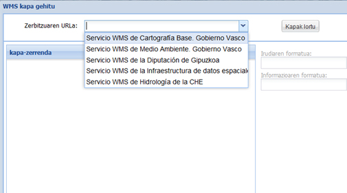 7. WMS zerbitzuak eransteko aukera. Batzuk aurretik ezarrita daude (Ingurumena, GFA, Nafarroa, CHE)