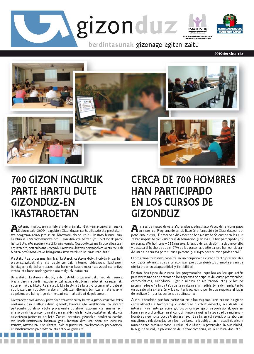- The Gizonduz initiative. A chronicle of achivements (2007-2010). Emakunde. (pdf 1,48 MB)
